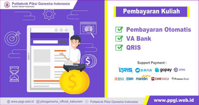 Pembayaran online semakin populer karena menawarkan kenyamanan dan efisiensi di era digital termasuk pada kebutuhan pembayaran perkuliahan Politeknik Piksi Ganesha Indonesia.
